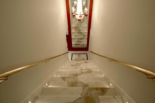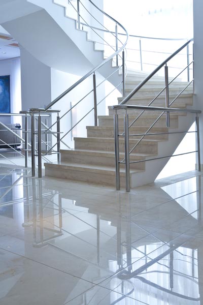 Revestimento de escada de mármore e escada de granito, nem sempre só são recursos estéticos, mas essenciais, para segurança por possibilitar a aplicação de acabamento antiderrapante, e o mesmo já ser menos escorregadio que outros materiais.